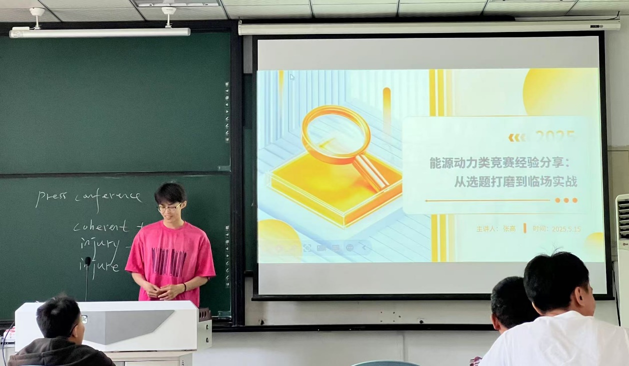 马祥宇同学作为2023级能源动力专业硕士研究生,重点介绍了高效传热技术、微波干燥与加热等领域的研究成果,并分享了参赛过程中的关键时间点和选题策略。