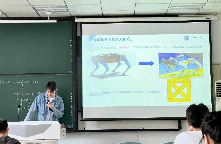 冉晋昆同学以全国老员工机器人大赛(国家一等奖)、中美青年创客大赛等为例,分享了如何将理论知识转化为实践成果,并详细介绍了比赛的参赛流程和答辩经验。